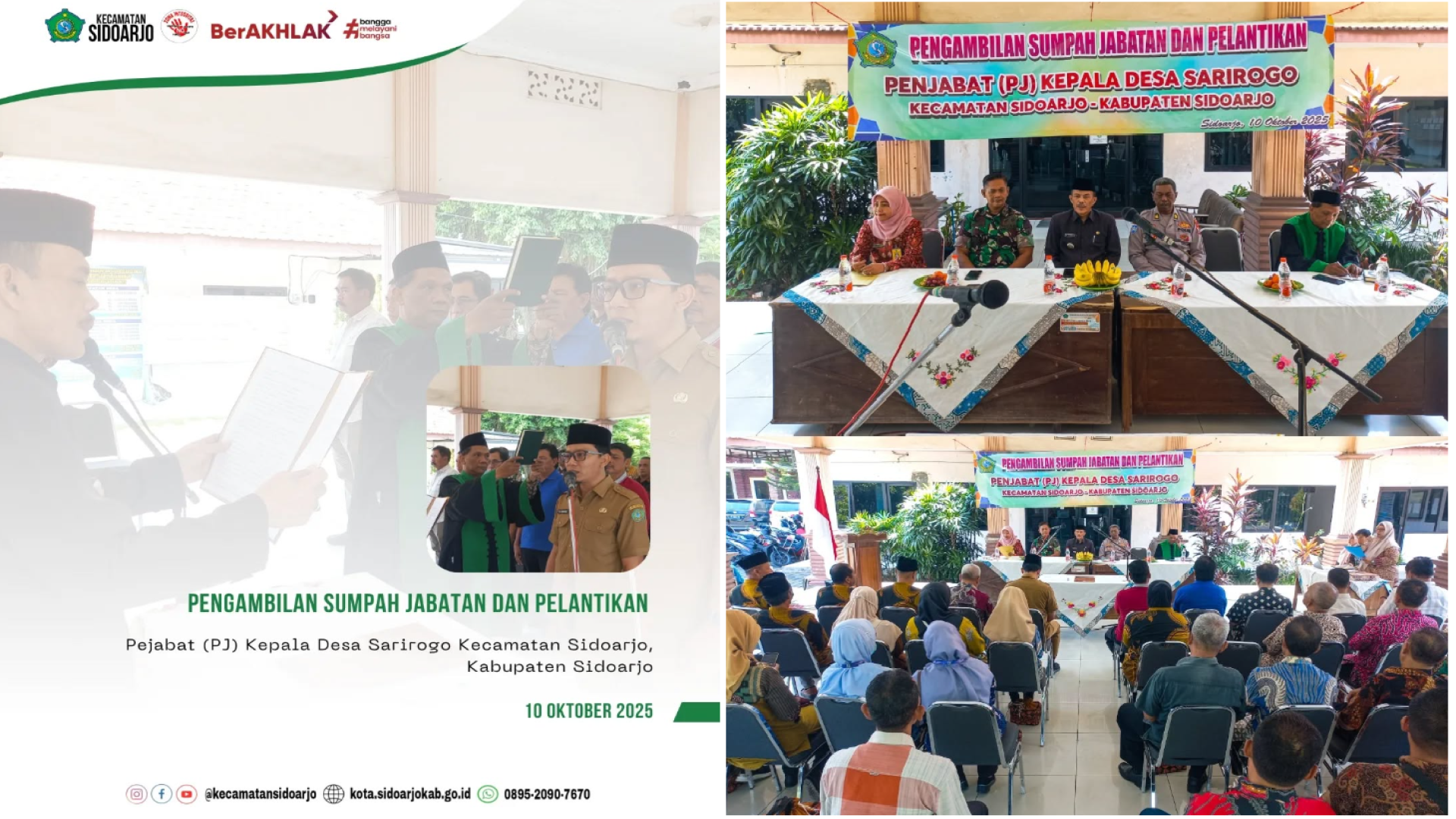 Jumat, 10 Oktober 2025 Bapak Rio Sumardika secara resmi dilantik sebagai PJ. Kepala Desa Sarirogo setelah diselenggarakan pengambilan sumpah jabatan...